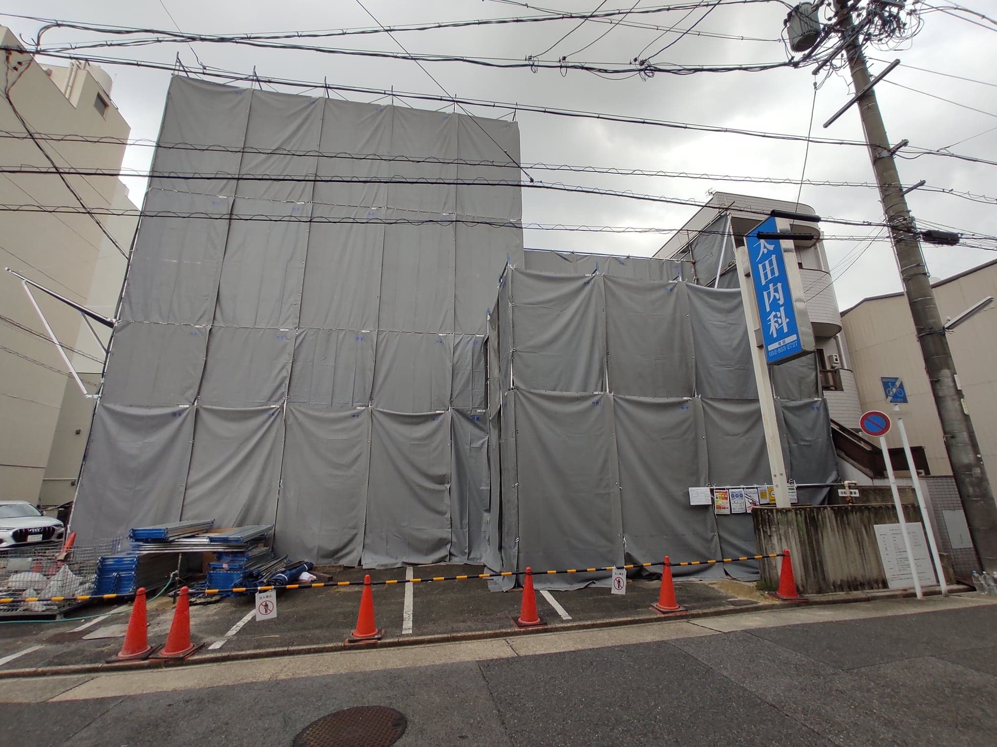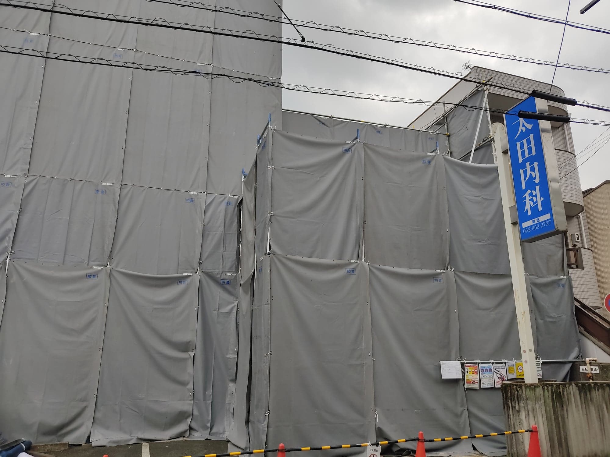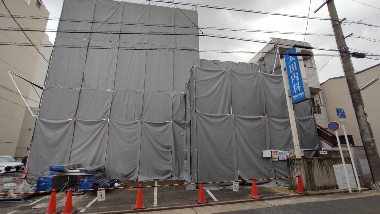 シートが掛けられて、解体工事が進んでいました。