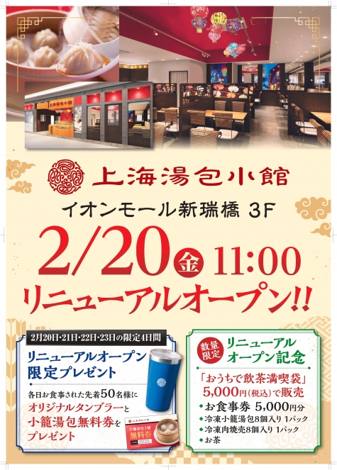 2026年2月20日(金)、イオンモール新瑞橋内で営業していた『上海湯包小館 新瑞橋店』がリニューアルオープンしていました!!