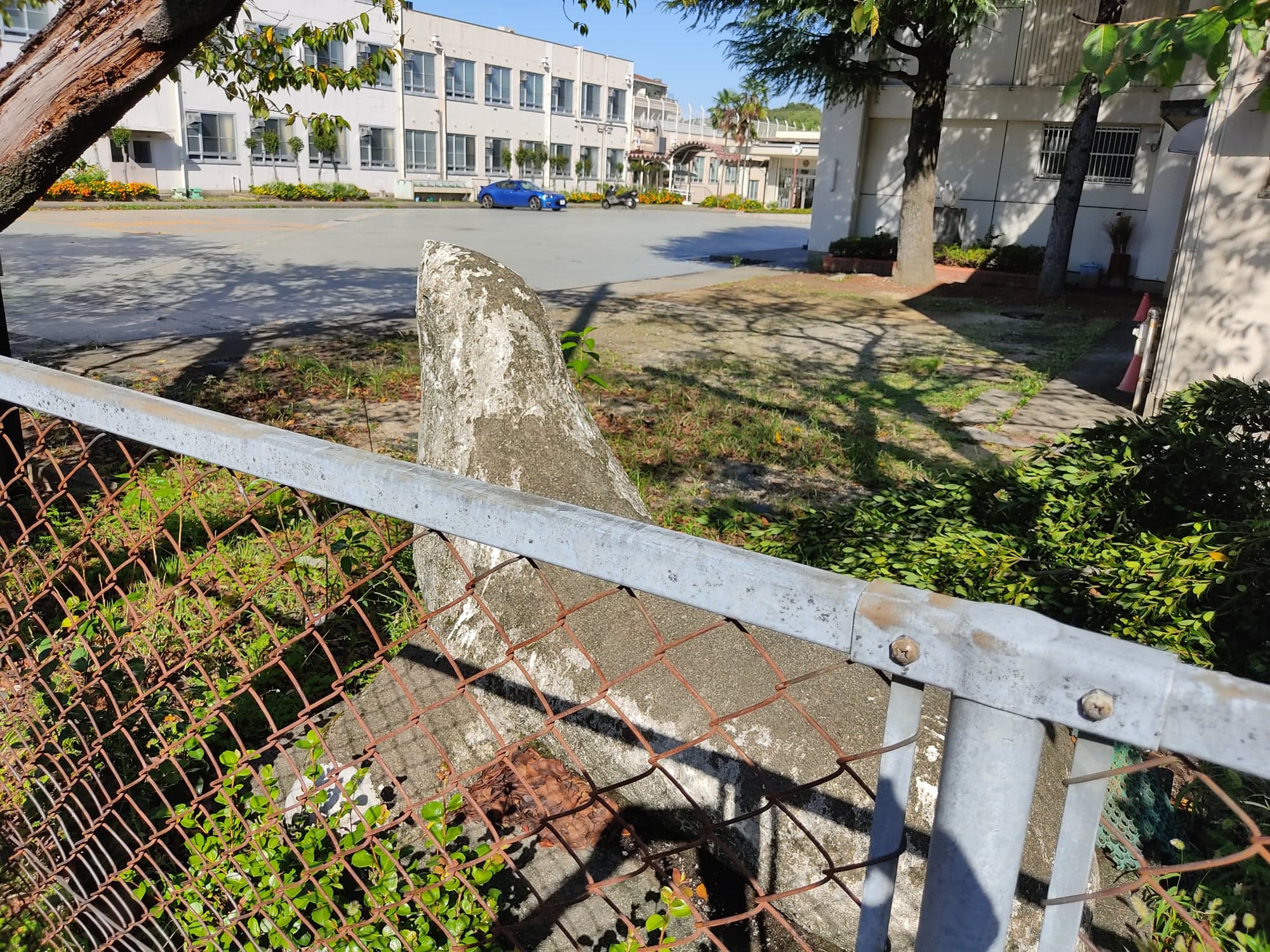 汐路中学校の正門でみんなを見守る『アシカ』ちゃん。