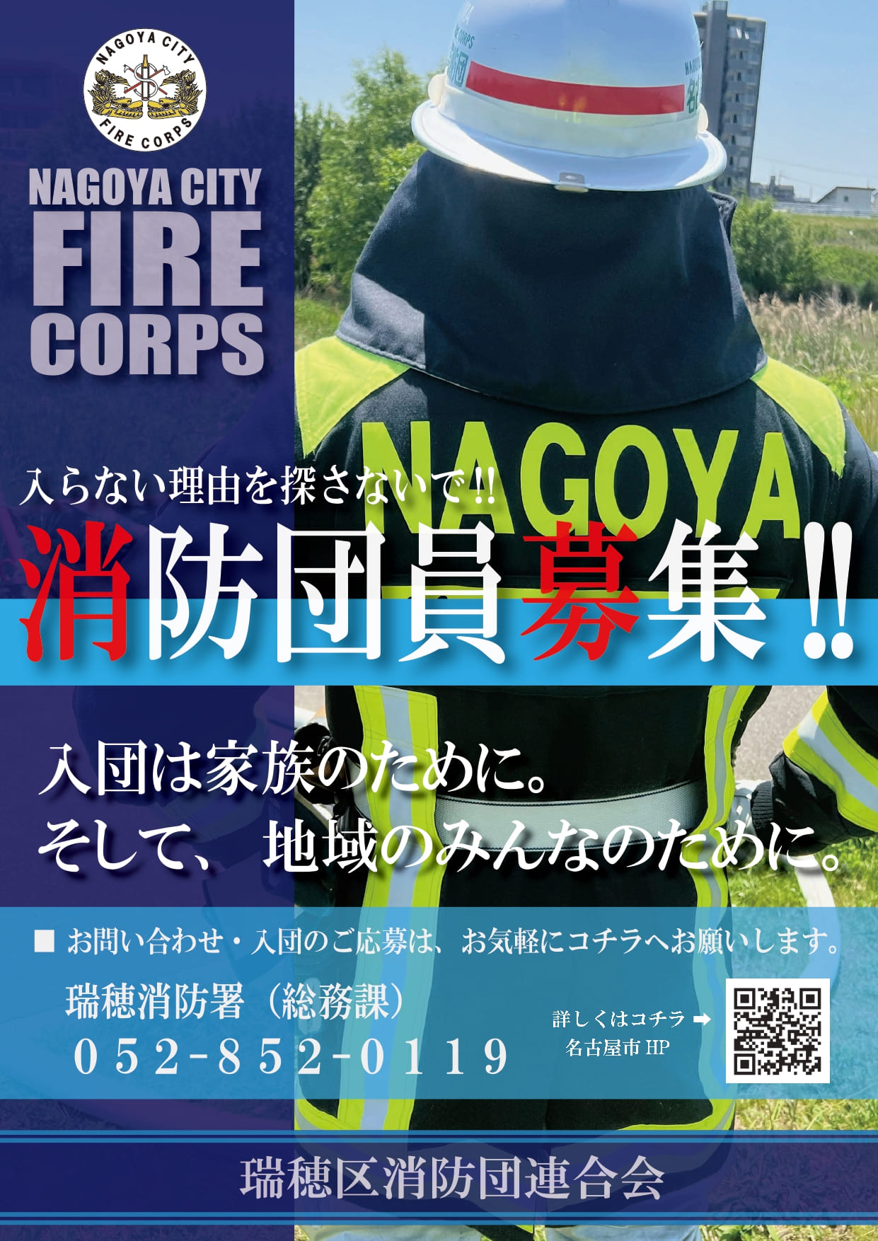 お問い合わせ・入団のご応募は、瑞穂消防署(総務課)052-852-0119