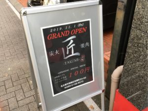 2019.11.1(金)に『焼肉 匠』さんがオープンします♪