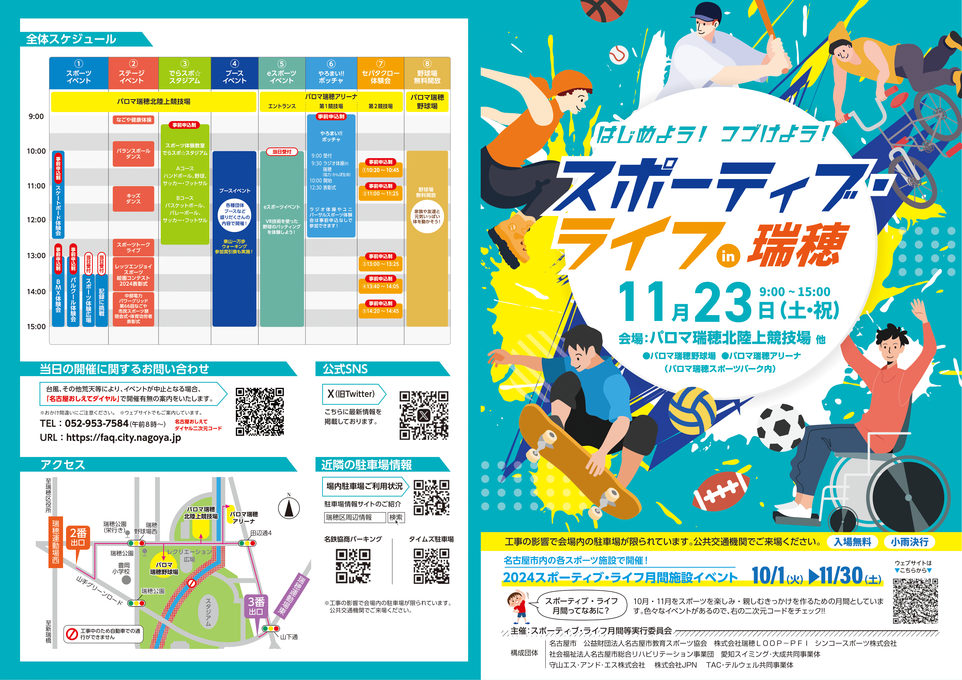 2024年11月23日(土・祝)、パロマ瑞穂スポーツパークで『スポーティブライフ in瑞穂』が開催されます!!