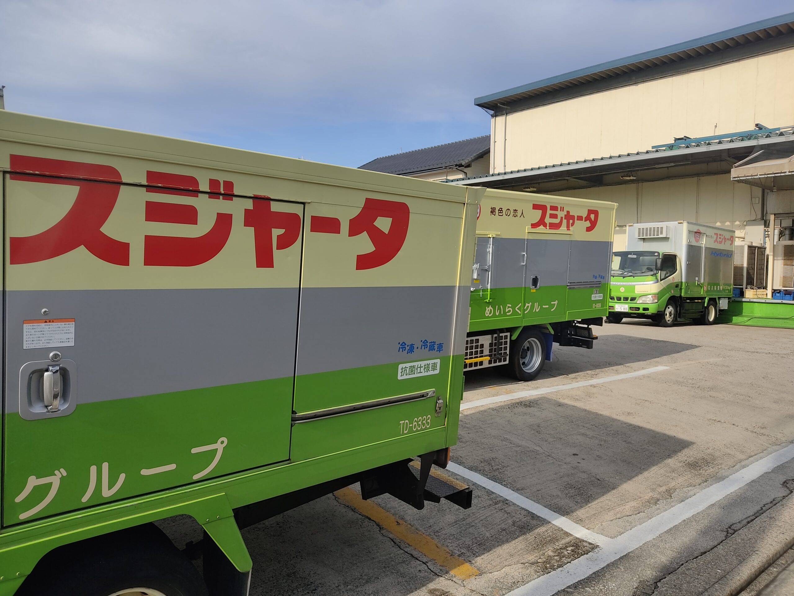 333m先には!街でよく見るスジャータのトラックがいっぱい!!