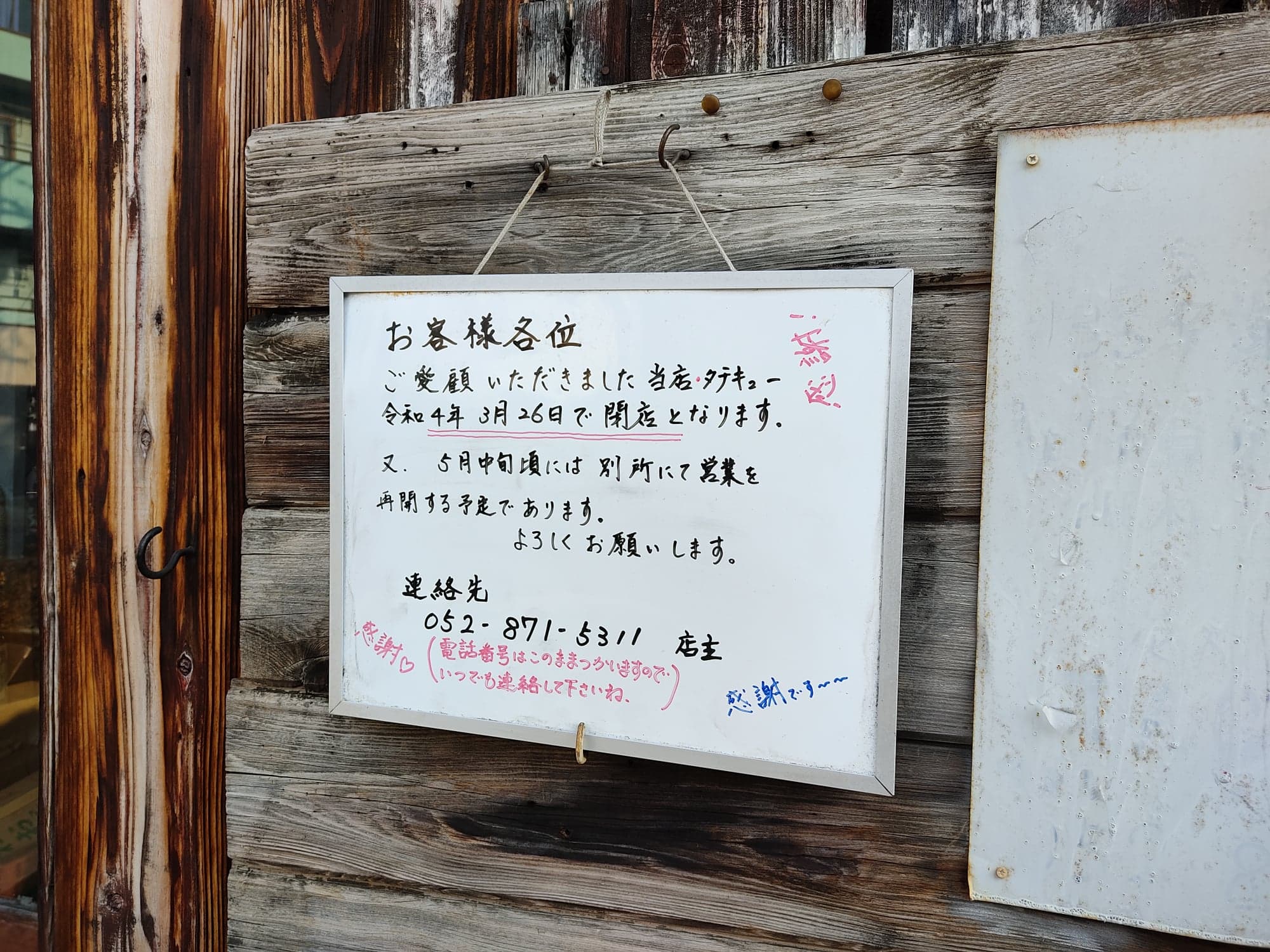 閉店の発表とともに、5月中旬に別の場所での営業再開のお知らせが出ていました!!