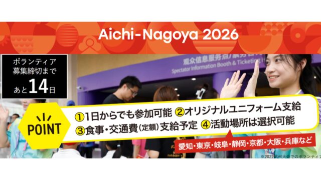 4/30(水)締切!『アジア大会 愛知・名古屋2026』のボランティアってどんな感じなの?【ニュース】