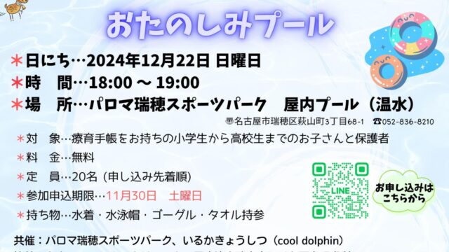 パロマ瑞穂スポーツパークの屋内プール『クリスマスイベント お楽しみプール』が開催!【瑞穂区イベント】