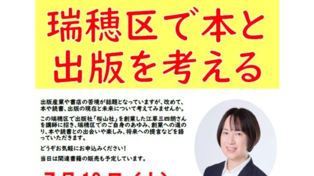 7/12(土)瑞穂図書館『瑞穂区で本と出版を考える』が開催!【瑞穂区イベント】