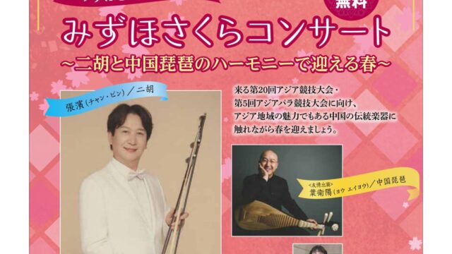 3/15(土)『「みずほさくらコンサート」~二胡と琵琶のハーモニーで迎える春~』瑞穂文化小劇場で開催!【瑞穂区イベント】