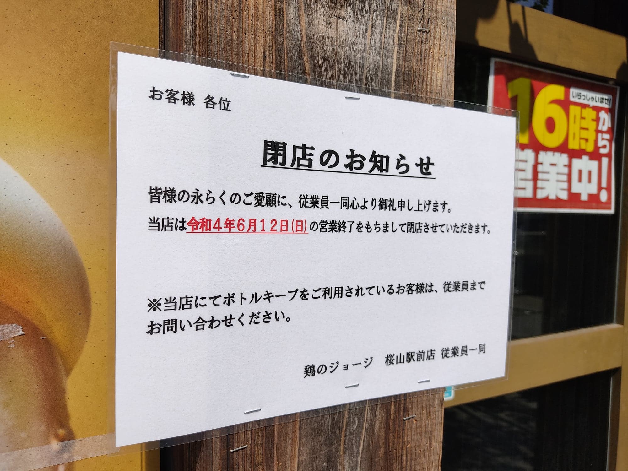 2022年6月12日(日)の営業をもって、地下鉄桜山駅前にあった『鶏のジョージ 桜山駅前店』が閉店のようです。