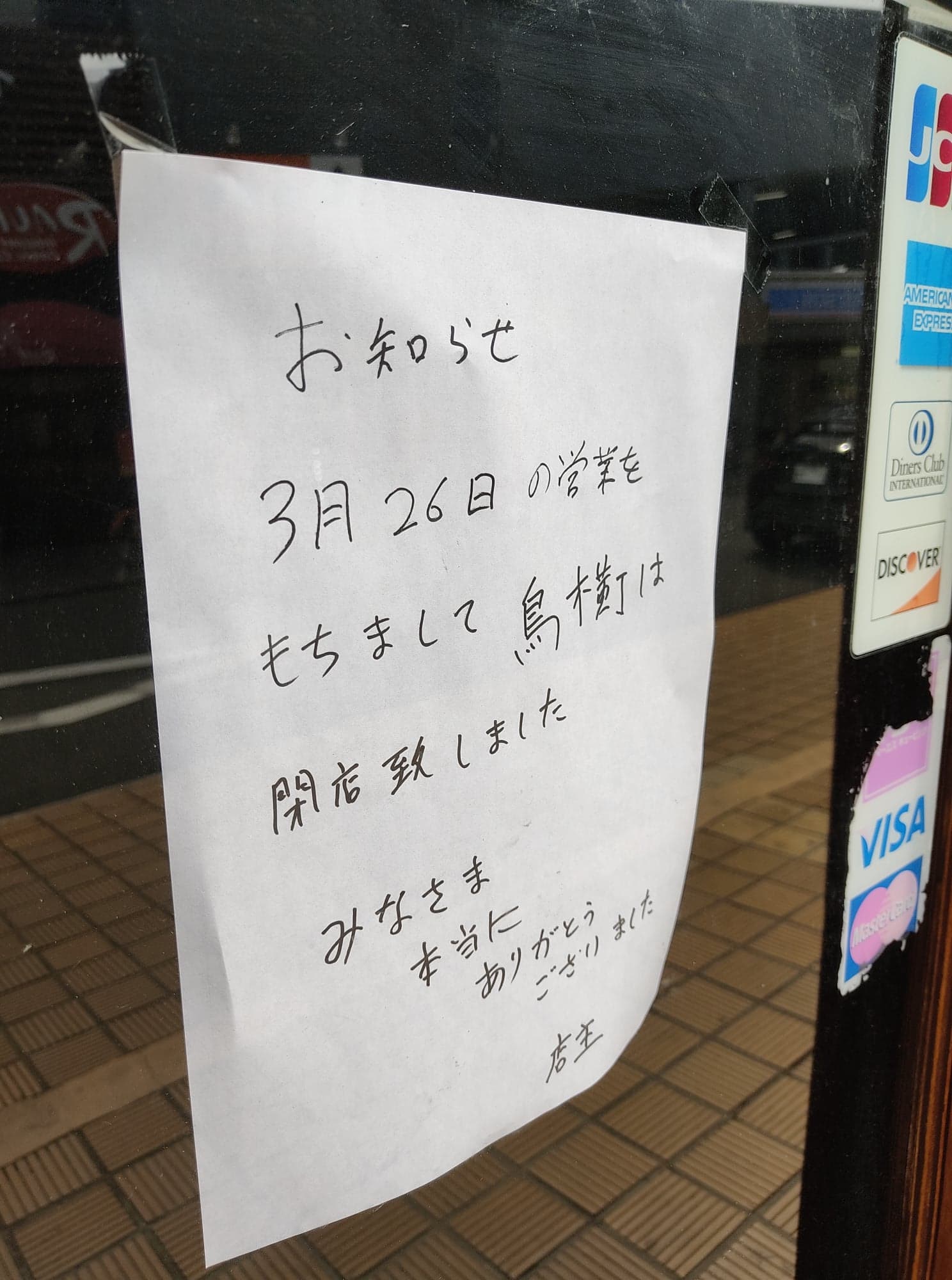 2022年3月26日(土)の営業をもって、名鉄堀田駅の高架下で営業していた居酒屋『鳥横丁』が閉店していました。