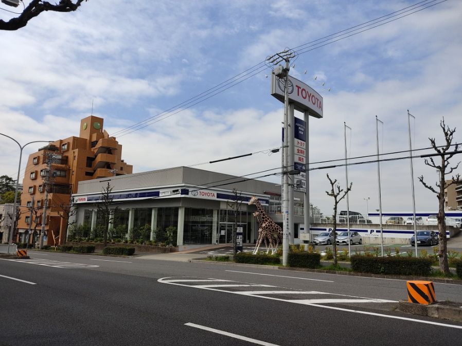 2021年4月に田辺通沿いを通っていたら、キリンが目印の『トヨタ』のお店の雰囲気がなんだか違う気がしました…
