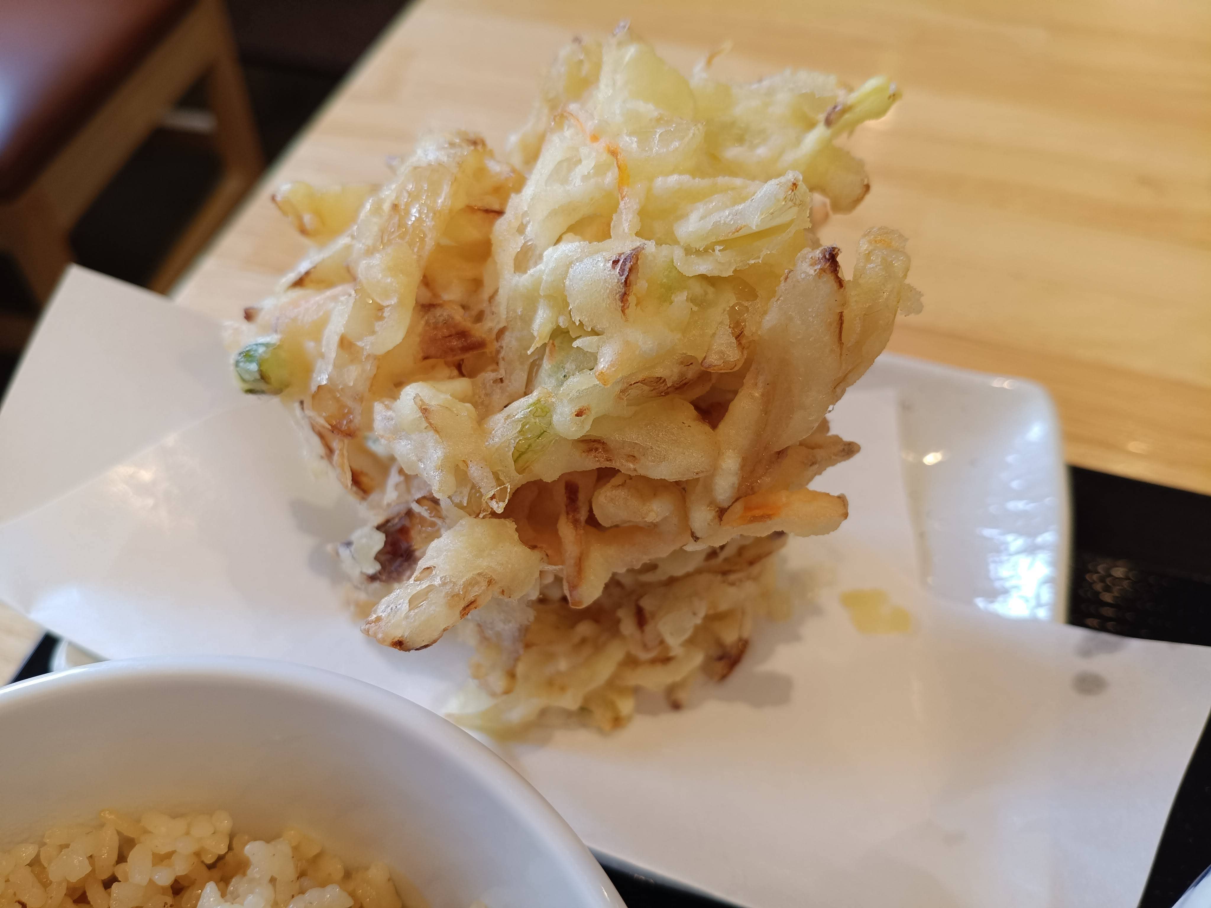 どこから食べたらいいか、分からないくらい大きいかき揚げ!