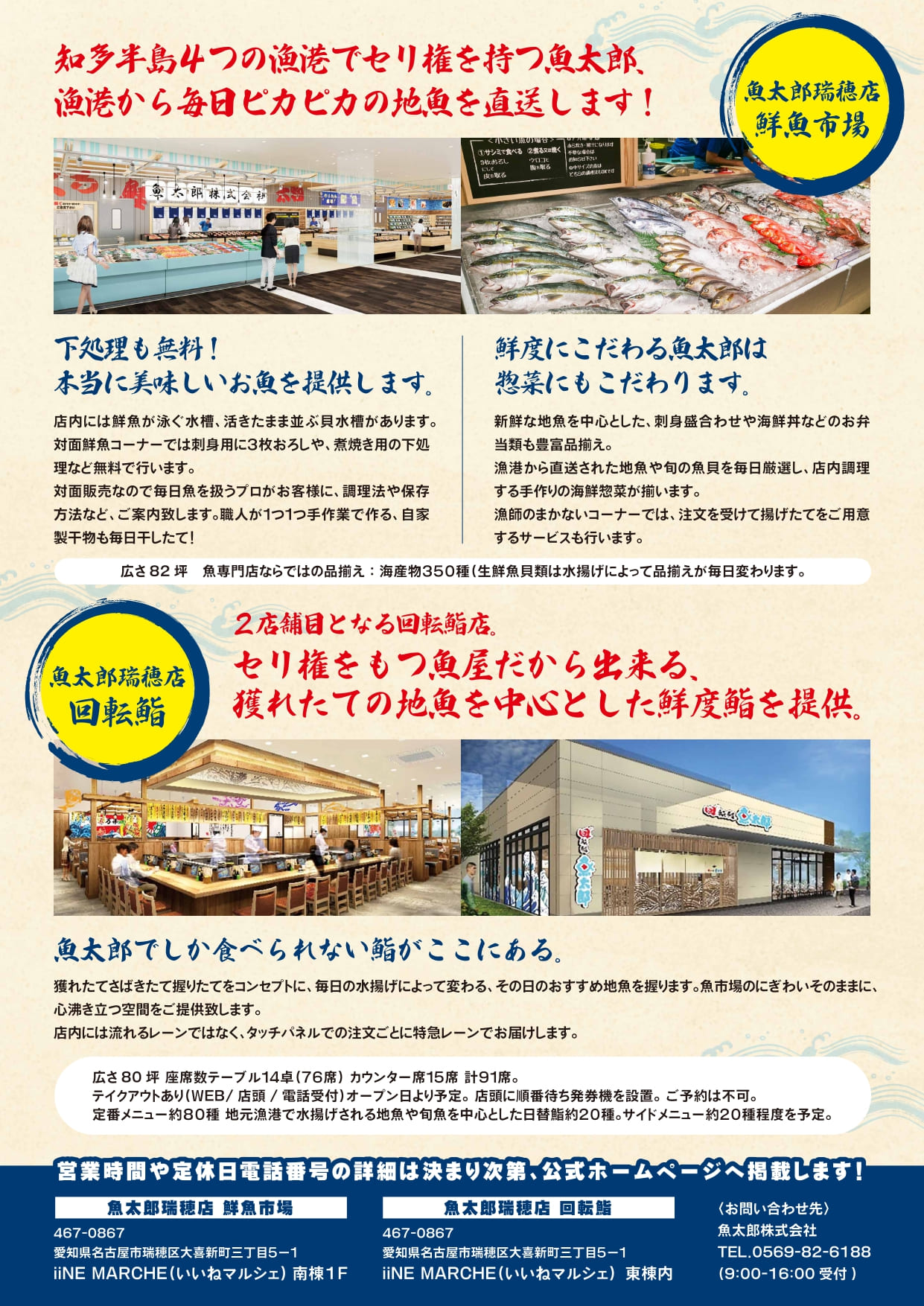 名古屋初出店!『魚太郎瑞穂店 鮮魚市場』で知多の新鮮で美味しい魚介が手に入る!!【瑞穂区開店】 4/3(水)名古屋市瑞穂区のiiNE MARCHE(いいねマルシェ)にオープンする『魚太郎瑞穂店 鮮魚市場』 知多半島の新...