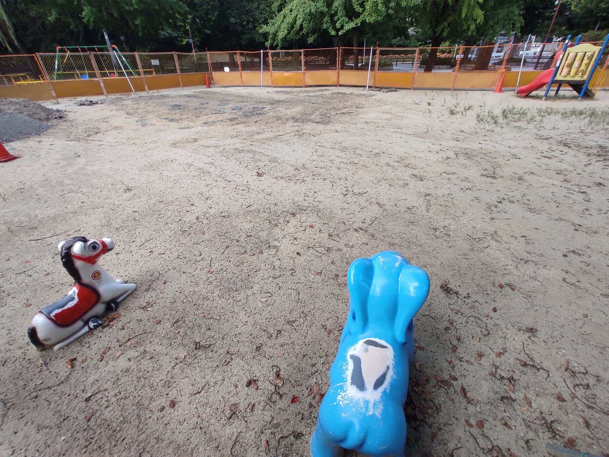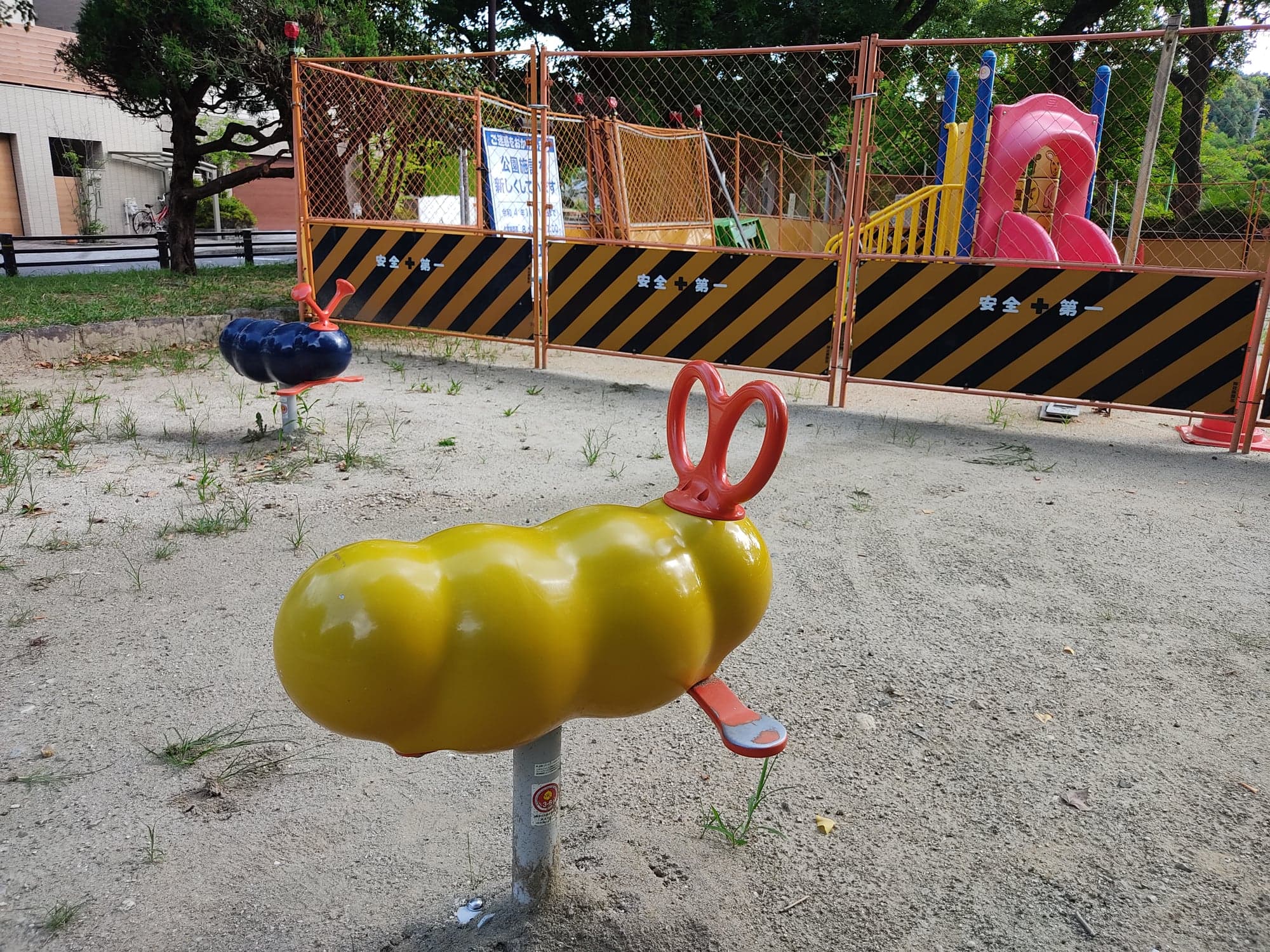 ↓ちょっと古くなっているこれらの遊具の周りにフェンスが取り付けられていたので、撤去&新しい遊具に変わるんではないでしょうか?