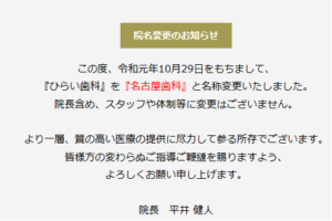 2019年10月末で名前が『名古屋歯科』に